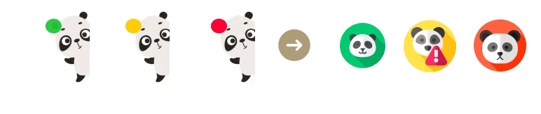 The screentime alert icons are gentle reminders which is reflected in the quirky panda expressions. The notification color indicates how much scrolling the user has done compared to the recommended amount.