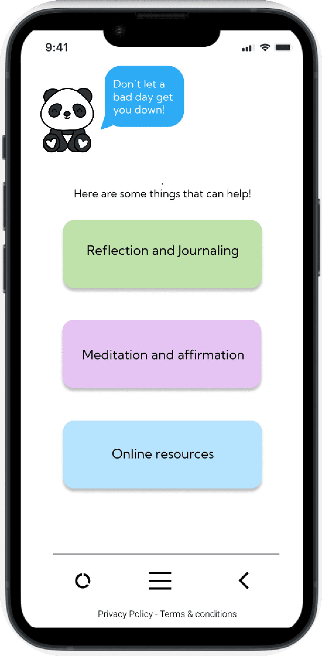 Make KareBare more proactive when checking in with users: We incorrectly assumed the chat box can only interact when the user wants to interact with its features. By including opportunities for KareBare to initiate conversations, build a positive relationship to become more trustworthy, and encourage better intervention during crisis situations.