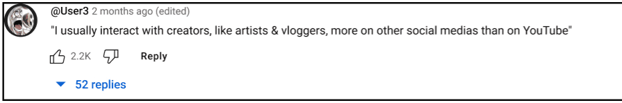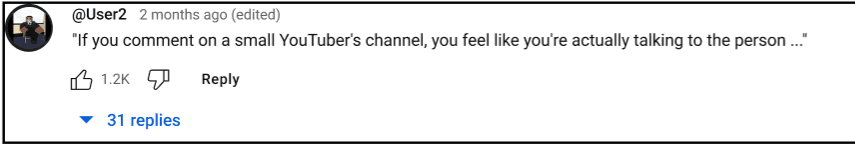 1) Users feel discouraged from leaving comments on videos for large content creators because they do not